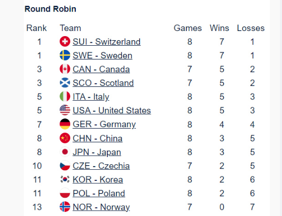 虎扑04月01日讯男子冰壶世锦赛循环赛第七轮、第八轮。中国队一天连战两场,分别以4-8不敌加拿大队、以5-6不敌美国队。目前中国队3胜5负排名第8。